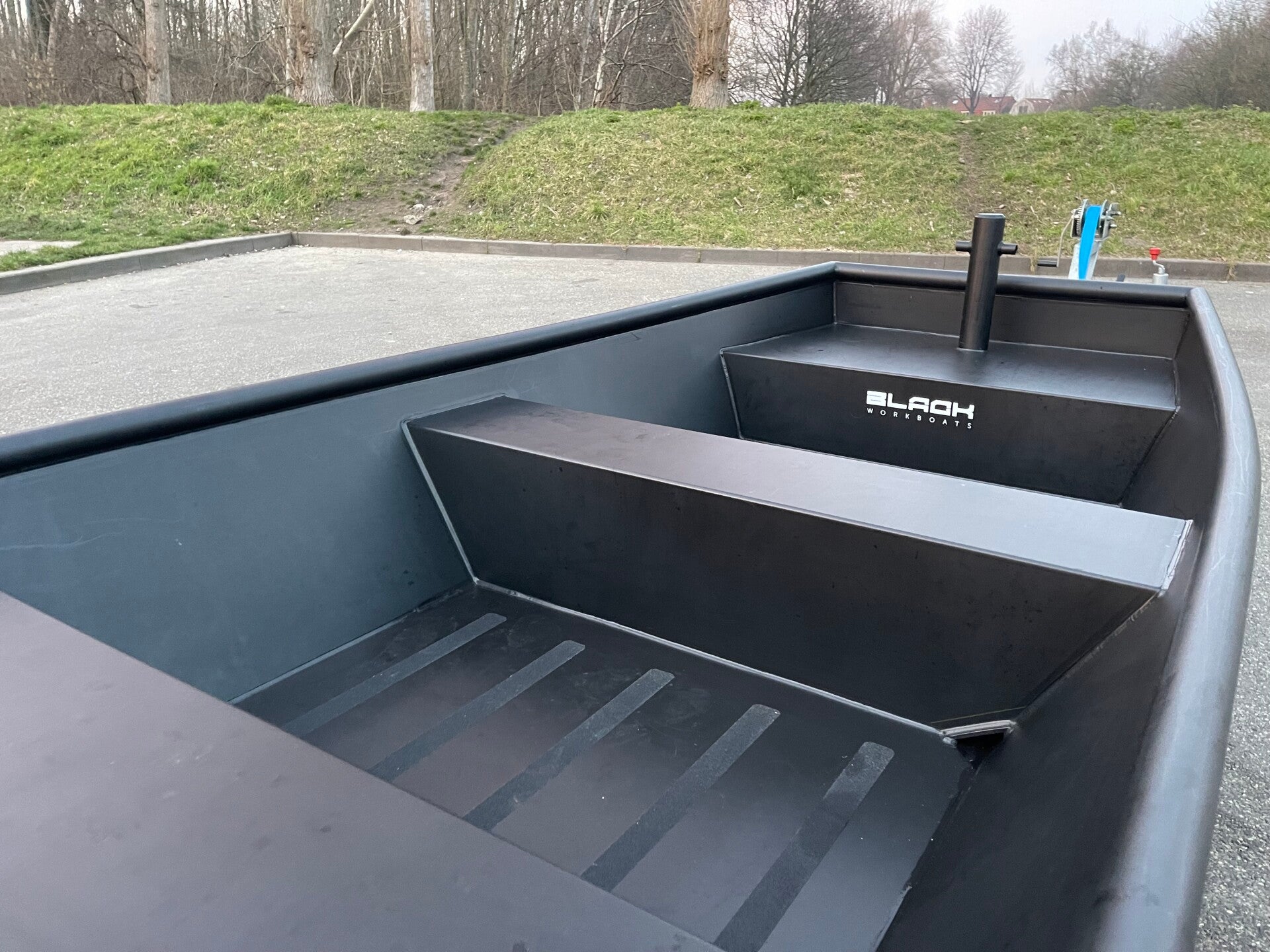 Met zijn royale afmetingen van 500 cm in lengte, 170 cm in breedte en 65 cm in hoogte biedt de Black Jon 500 voldoende ruimte en stabiliteit voor al je wateractiviteiten. Met een diepgang van 15 cm kun je gemakkelijk manoeuvreren in verschillende wateromstandigheden, terwijl het gewicht van 190 kg zorgt voor een moeiteloze bediening en transport.
