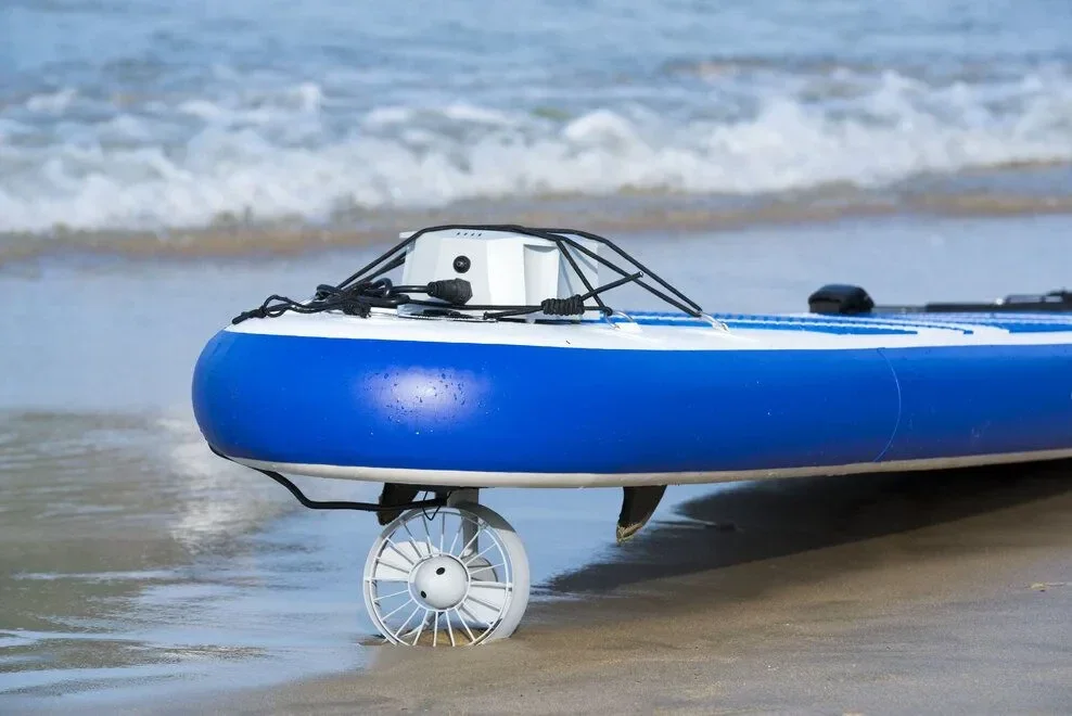 aquita is uw kleine helper met eilandhoppen, tegenwind en tochten over het meer. Het versnelt een SUP tot ongeveer 11 km/u. De Vaquita accu gaat 5 uur mee op half vermogen.