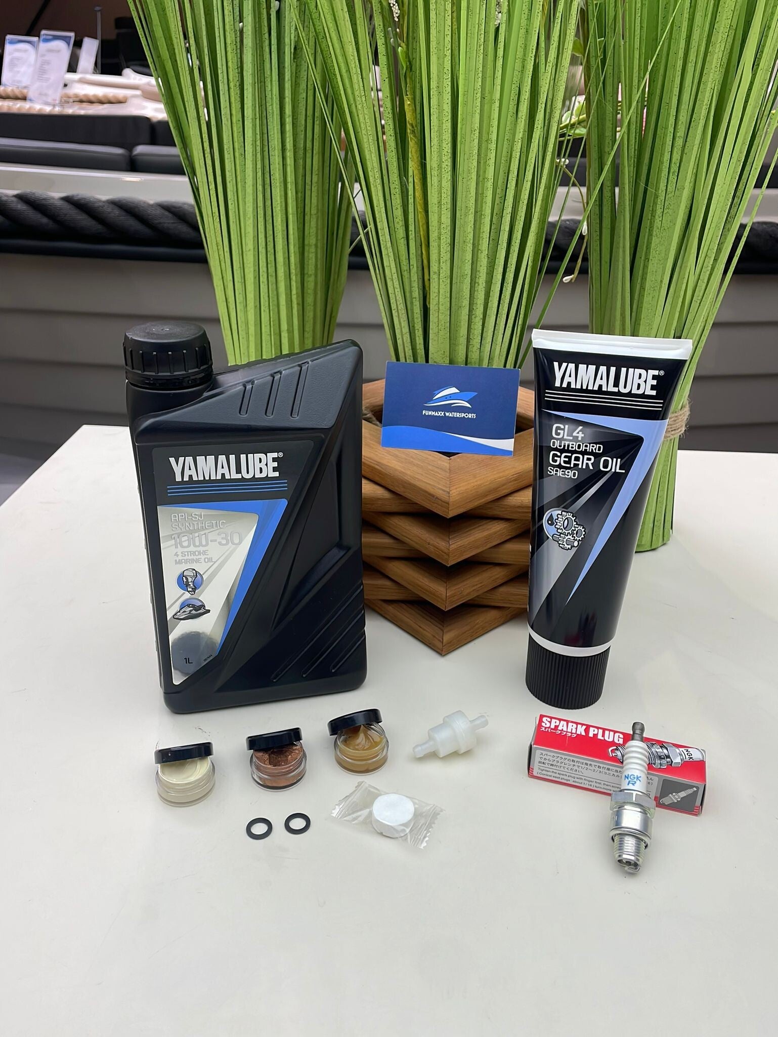 Het pakket bevat onder andere een bougie, brandstoffilter, pakkingen voor het staartstuk en staartstukolie. Daarnaast bevat het pakket ook kopervet en Yamalube lical grease voor de knevels, wat zorgt voor een soepele werking van de motor.
