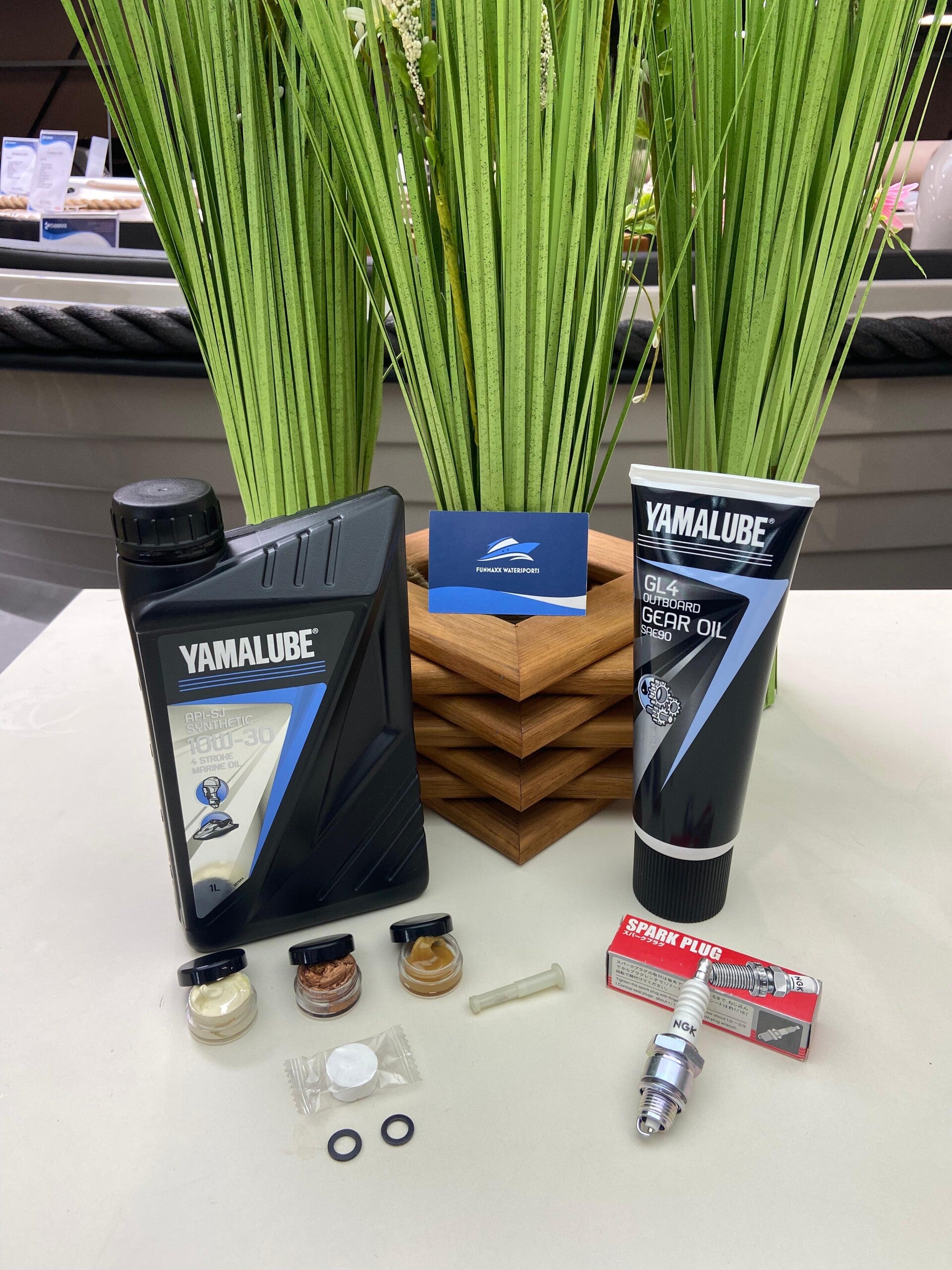 Het pakket bevat onder andere een bougie, brandstoffilter, pakkingen voor het staartstuk, motorolie en staartstukolie. Daarnaast bevat het pakket ook kopervet en Yamalube lical grease voor de knevels, wat zorgt voor een soepele werking van de motor.