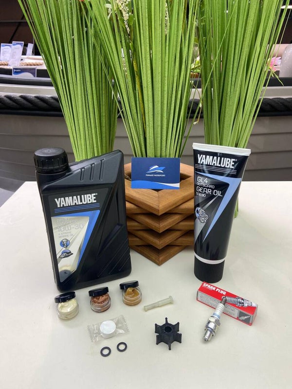 Het pakket bevat onder andere een bougie, brandstoffilter, pakkingen voor het staartstuk, motorolie en staartstukolie. Daarnaast bevat het pakket ook kopervet en Yamalube lical grease voor de knevels, wat zorgt voor een soepele werking van de motor.