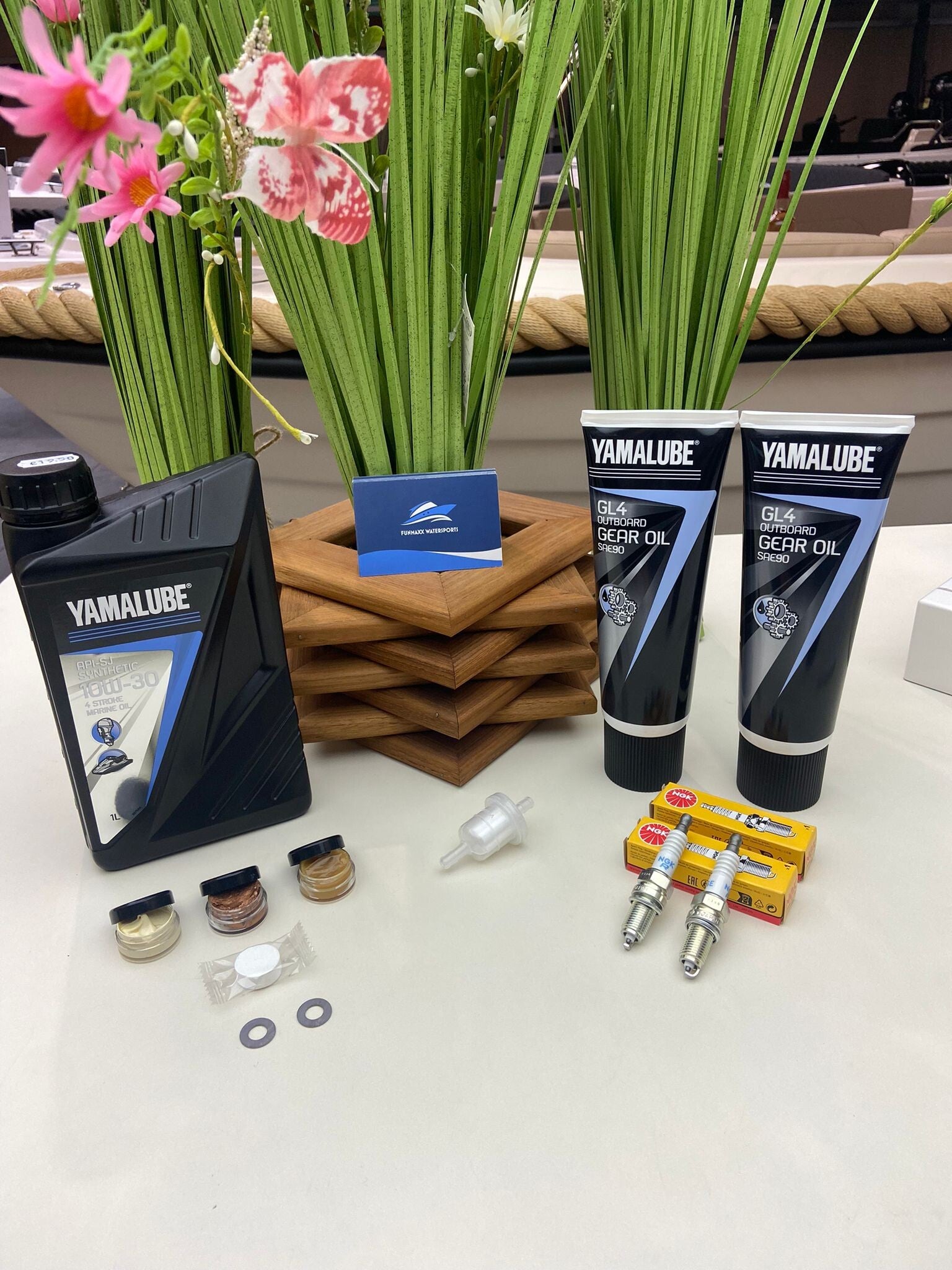 Het pakket bevat onder andere een bougie, brandstoffilter, pakkingen voor het staartstuk, motorolie en staartstukolie. Daarnaast bevat het pakket ook kopervet en Yamalube lical grease voor de knevels, wat zorgt voor een soepele werking van de motor.