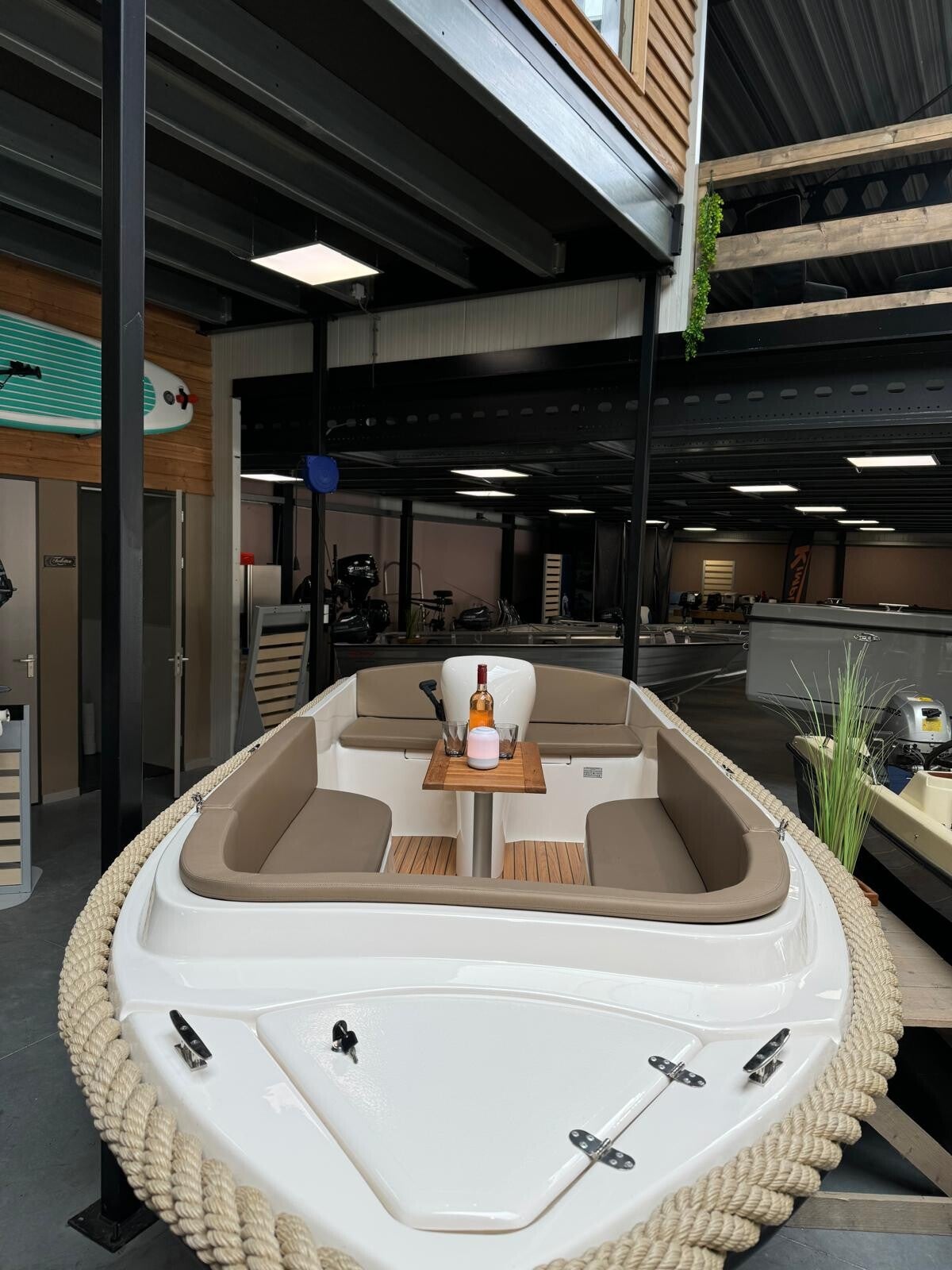 De Funmaxx 480 is uitgerust met een elektrische start, wat het gebruiksgemak aanzienlijk vergroot. Op het console vindt u een handige USB 12-volt aansluiting, perfect voor het opladen van uw apparaten tijdens uw vaartochten. Dankzij de hoge gangboorden vaart de boot zeer stabiel en reageert hij direct op uw stuurbewegingen, wat zorgt voor een plezierige en veilige vaarervaring. Ook het dekzijl is inbegrepen en op de achetrzijde van de boot zit het zwemtrappetje