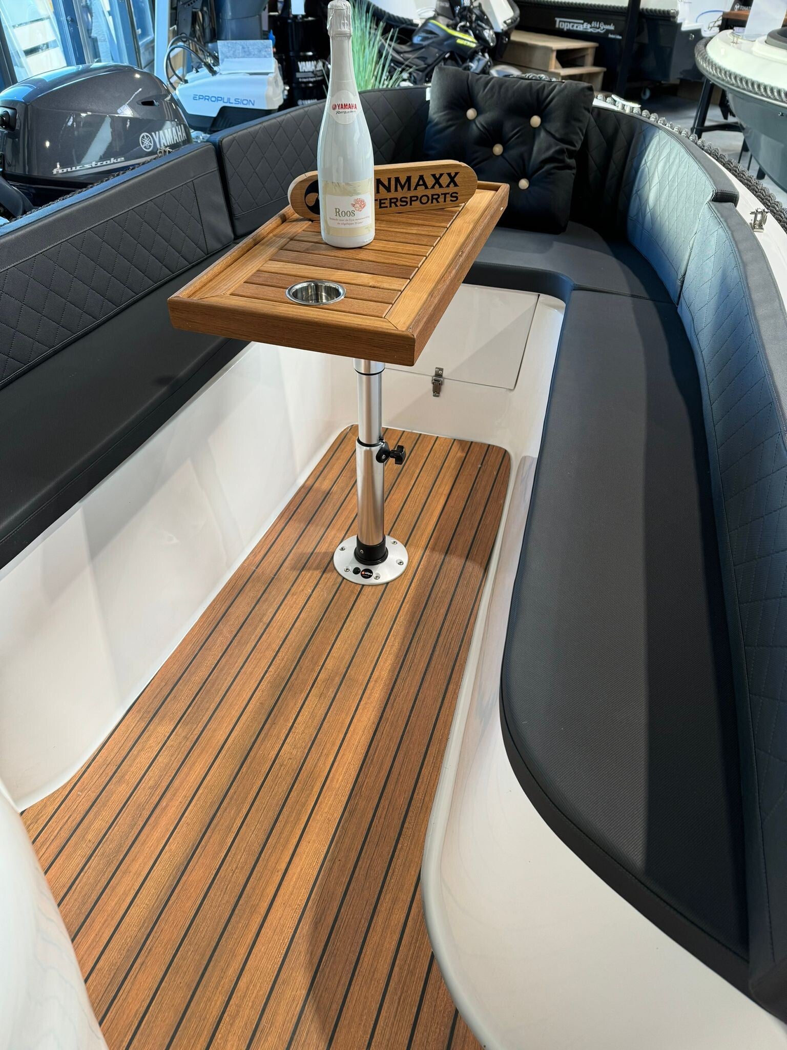 Deze luxe uitvoering van de Funmaxx 460 biedt alles wat je nodig hebt voor een comfortabele dag op het water. Het stijlvolle ontwerp wordt gecompleteerd door een hoogwaardige HPL-vloer, een elegante wijntafel, een luxe kussenset, en een zonnedek voor ultieme ontspanning. Bovendien wordt de boot geleverd met een praktisch dekzeil en een bimini top, waarmee je altijd beschermd bent tegen de zon of een onverwachte regenbui.