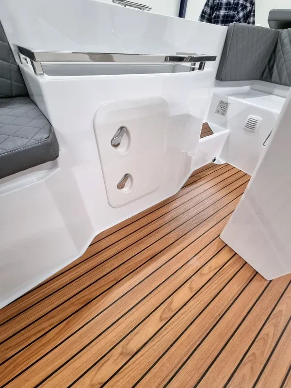 De motor van de Silveryacht 655 is veilig ingesloten in een achterstevenkast, wat zorgt voor een nette uitstraling en extra veiligheid voor de opvarenden. Daarnaast zijn uitbreidingen zoals een zwemplateau mogelijk, wat de boot nog veelzijdiger maakt.