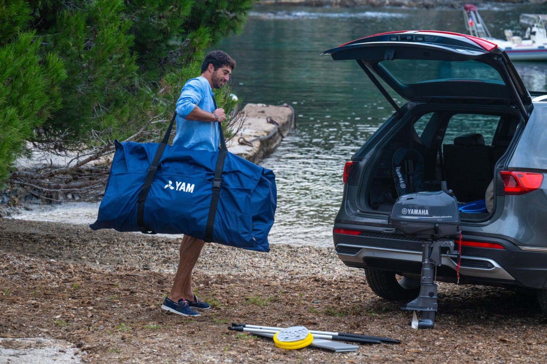 De lichtgewicht lattenbodem en opblaasbare drijvers maken het gemakkelijk om hem snel op te blazen en te gebruiken, terwijl de sterke aluminium roeispanen zorgen voor soepele en efficiënte roei-prestaties. U kunt ook een Yamaha buitenboordmotor of Electric Drive plaatsen, waardoor de YAM 240T geschikt is voor verschillende watersportactiviteiten.