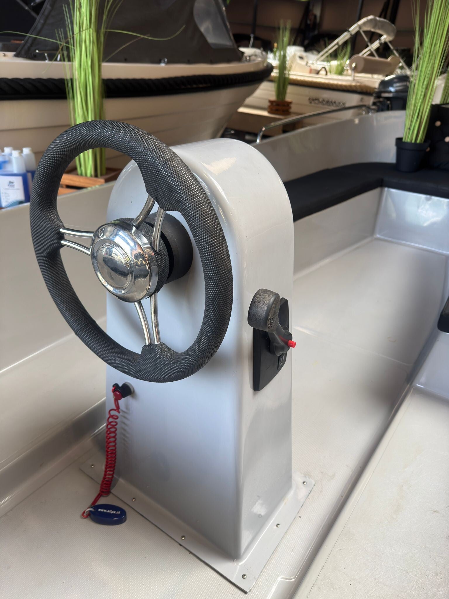 De boot wordt geleverd met een op maat gemaakt dekzeil, zodat je ‘m netjes en droog kunt afdekken wanneer je niet vaart.