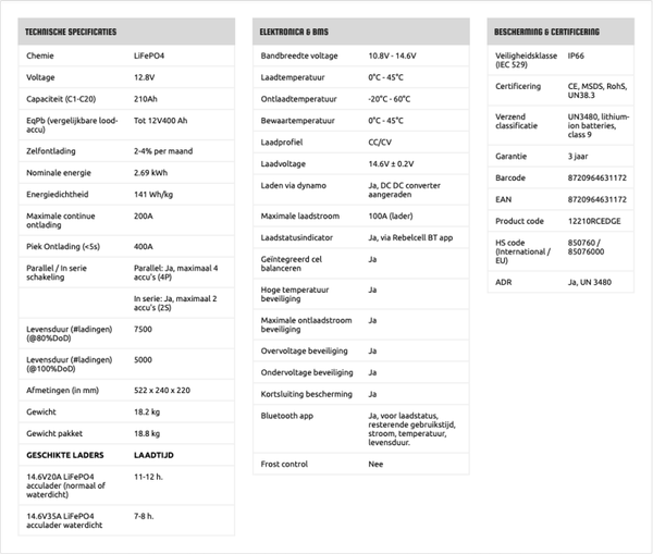 Rebelcell 12V210 EDGE LiFePO4 accu
