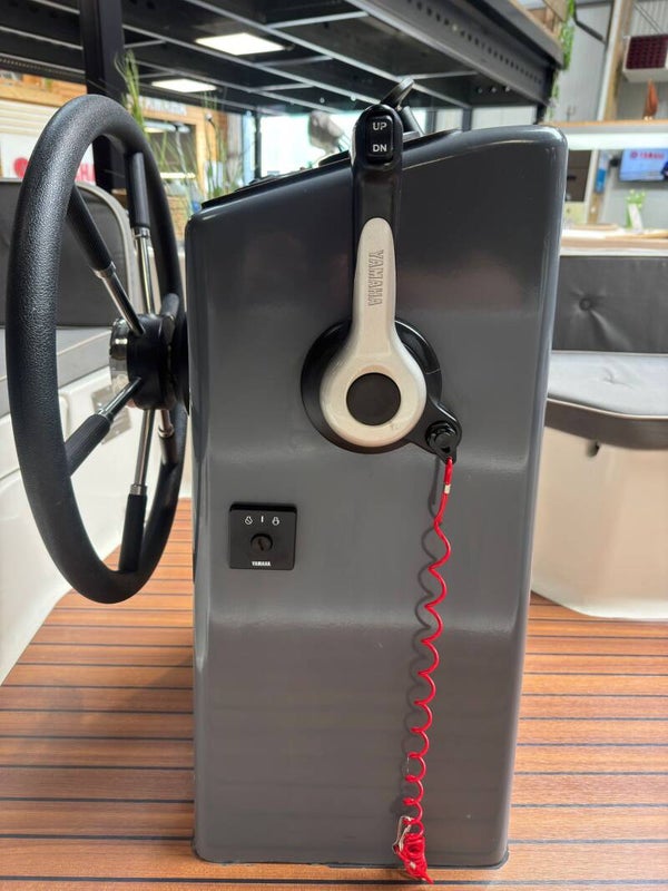 Het console is uitgerust met een officiële Yamaha tellerset, inclusief een snelheidsmeter en toerenteller, zodat je altijd zicht hebt op de prestaties van de motor. Aan de achterzijde van de boot vind je een handige zwemtrap, perfect voor een frisse duik op een warme dag.