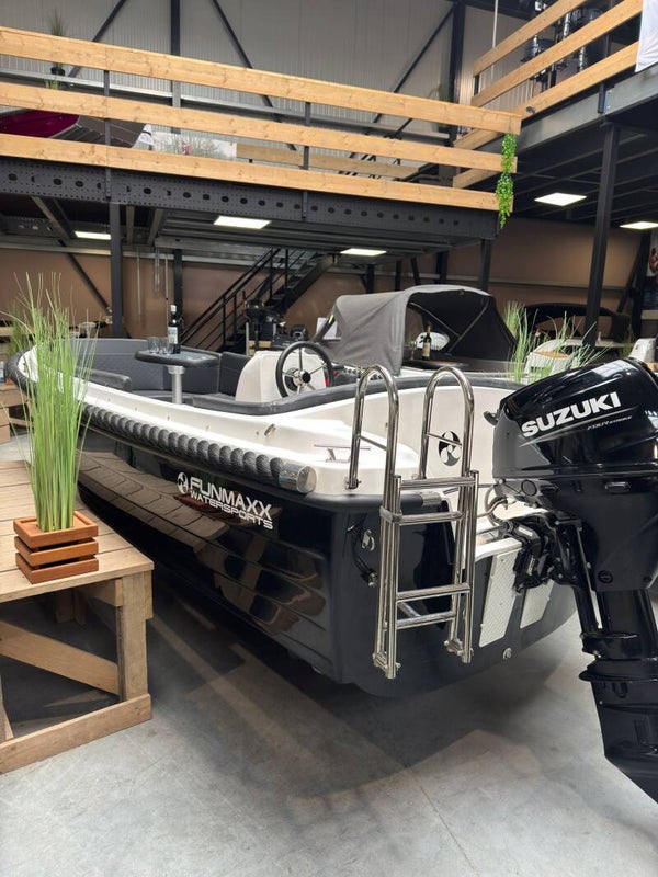 Stap aan boord van deze prachtige Funmaxx 480 en ervaar ultiem vaarplezier. Uitgerust met een krachtige Suzuki 30 PK buitenboordmotor uit 2020, geniet u van soepele vaart, betrouwbare prestaties en voldoende vermogen voor ontspannen tochten of sportieve uitjes.