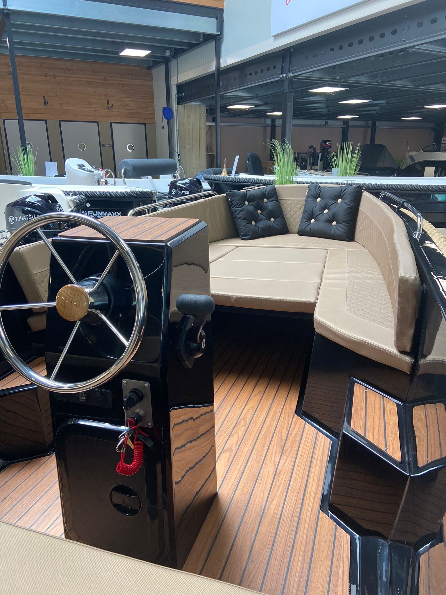 Ruimtelijke Rondzit: De sloep beschikt over een ruime rondzit met comfortabele kussens, waar je met gemak met 5 personen kunt zitten. Dit maakt de boot ideaal voor sociale uitjes en ontspannen momenten op het water.