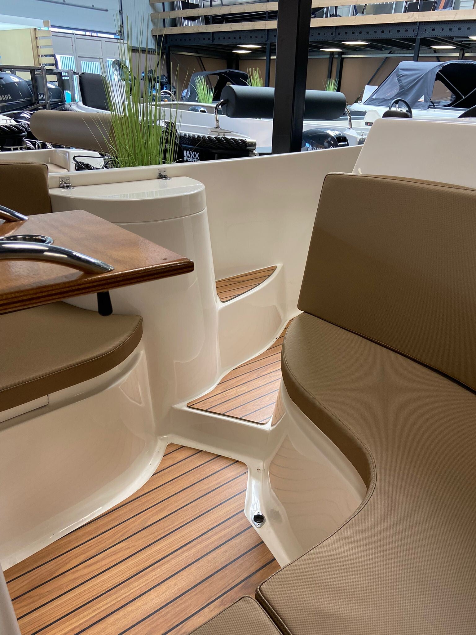 Bescherming en Stijl: De kabelaring rondom de boot biedt extra bescherming en verhoogt de veiligheid tijdens het varen. De strakke, moderne uitstraling van de boot zorgt ervoor dat je zeker opvalt op het water.