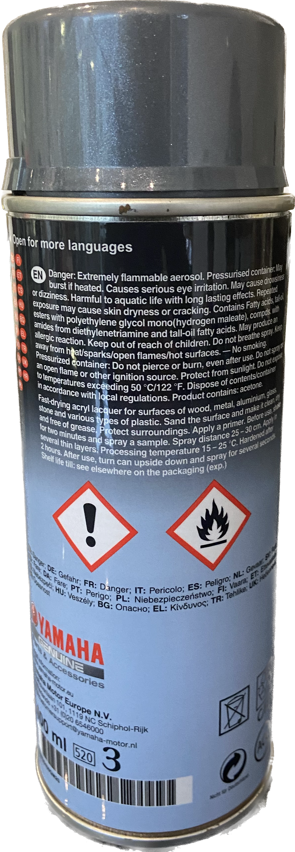 De Yamaha spray paint is geschikt om uw motorkap bij te werken wanneer u hier een kras of beschadiging op heeft. Voor de kleurstelling van uw motorkap kunt u onderstaande richtlijn aanhouden
