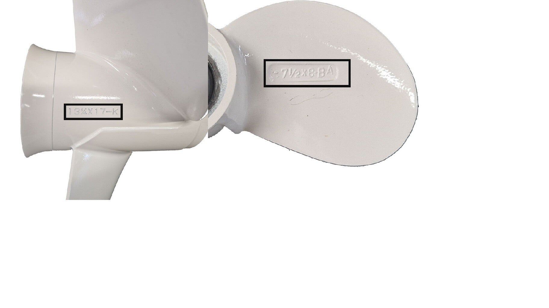 Indien u de propeller wilt vervangen en u heeft de “oude” proppeller nog kunt u de exacte gegevens terugvinden op het blad of op de hub, onderstaand treft u 2 voorbeelden hiervan.