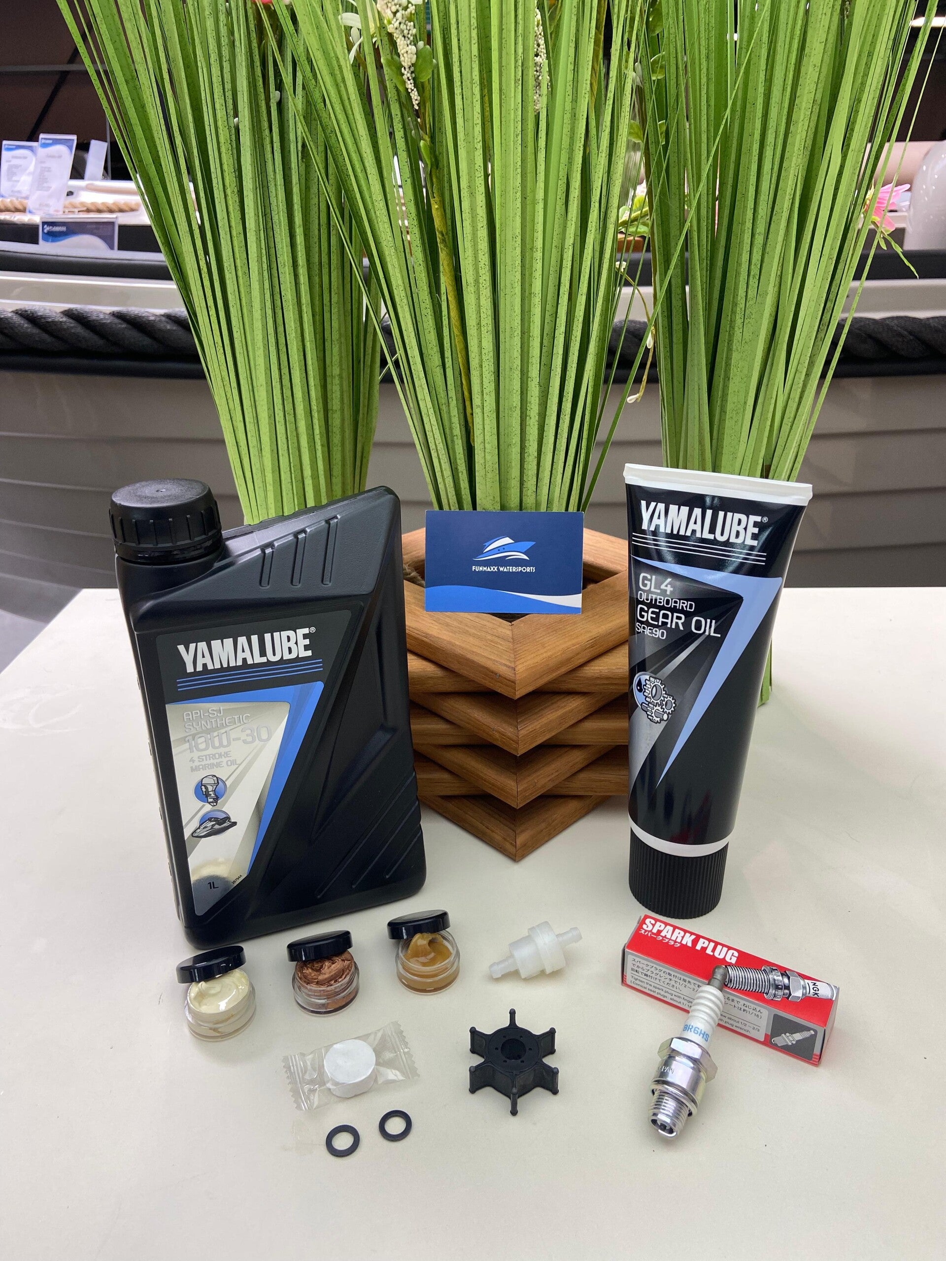 Het pakket bevat onder andere een bougie, brandstoffilter, pakkingen voor het staartstuk, motorolie en staartstukolie. Daarnaast bevat het pakket ook kopervet en Yamalube lical grease voor de knevels, wat zorgt voor een soepele werking van de motor.