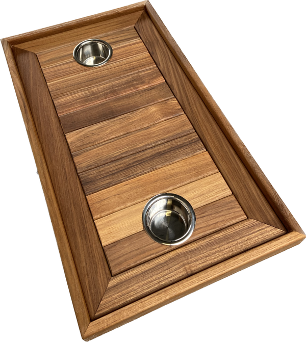Teak Houten Wijn-/Boottafel – Handgemaakt met Opstaande Rand