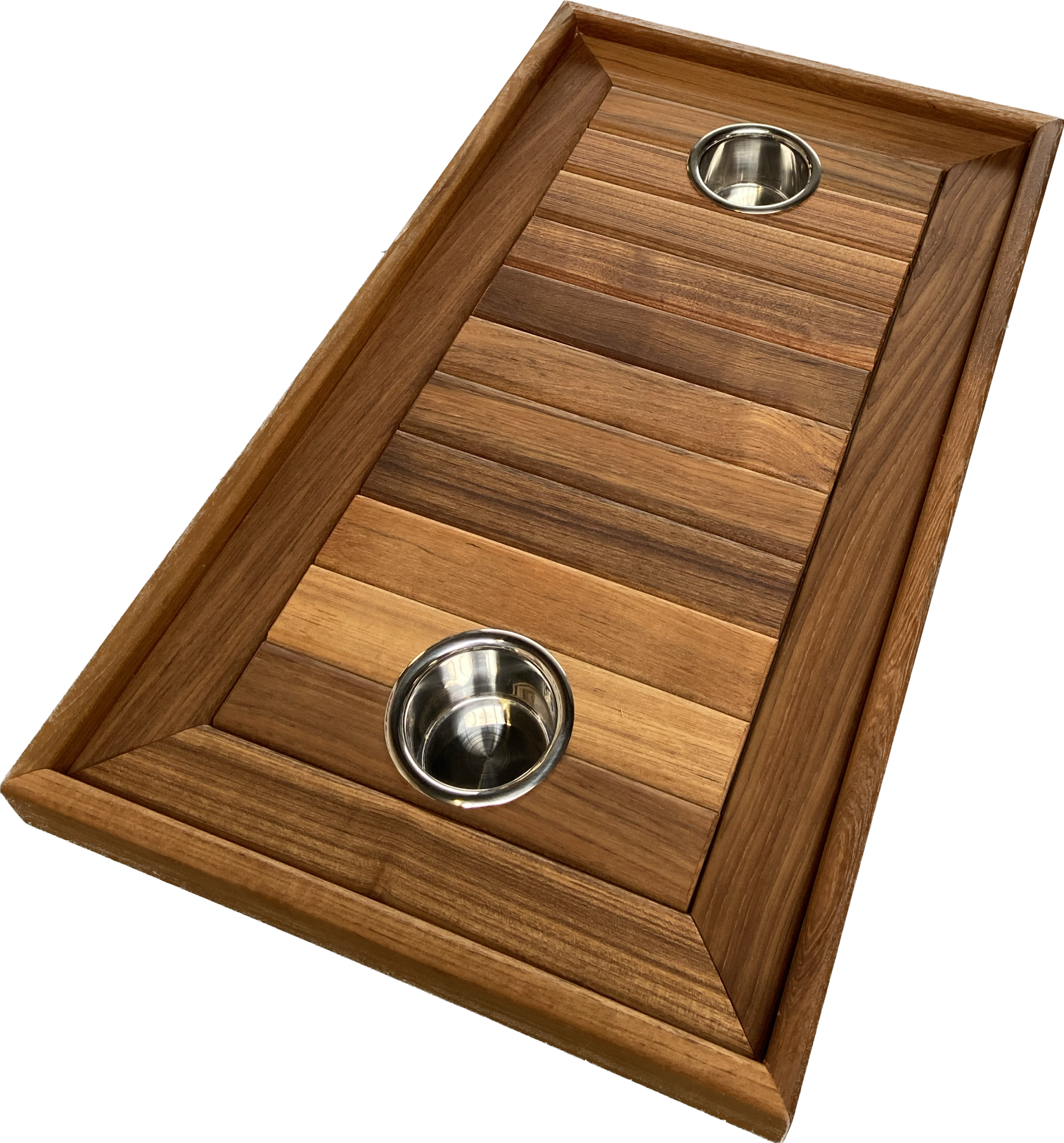 Onze teakhouten wijn- en boottafels zijn handgemaakt en elk stuk is uniek, met de mogelijkheid om te kiezen voor bekerhouders of zonder, afhankelijk van je voorkeur. Deze tafels zijn niet alleen praktisch en elegant, maar voegen ook een vleugje nautische luxe toe aan elke boot. Ze zijn beperkt beschikbaar zolang de voorraad strekt, dus mis de kans niet om een stukje vakmanschap aan boord te halen!